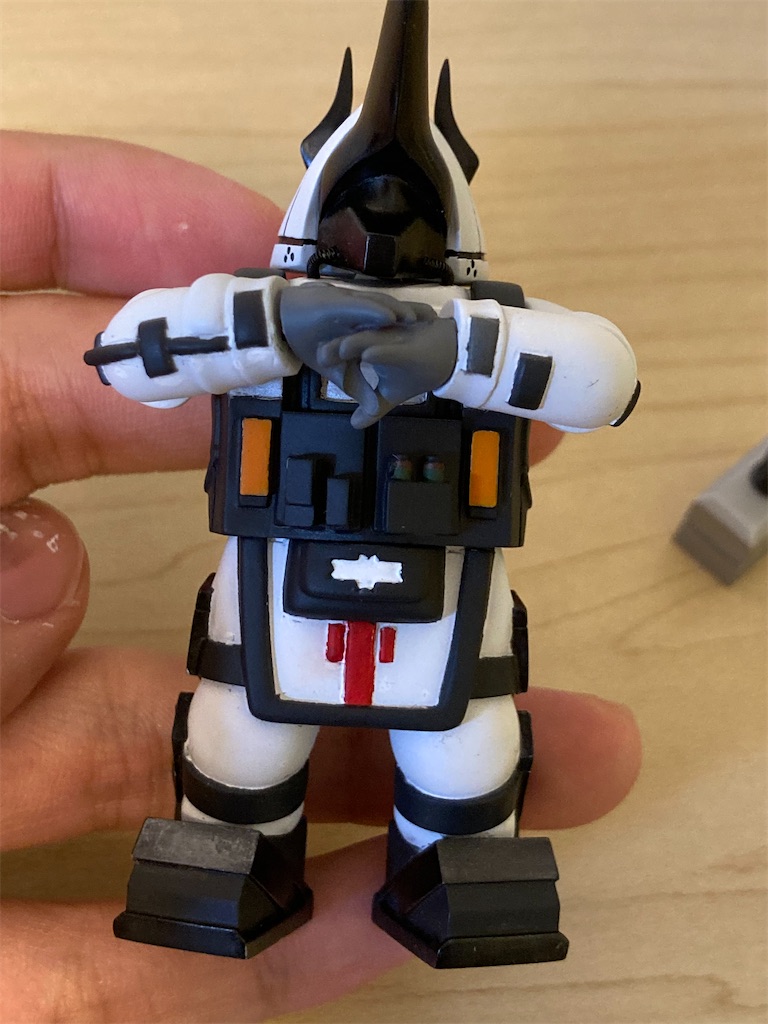 黒服と金属部分は明るめのほうが良かったなぁと思っているが、暗い方が模型映えはするよね