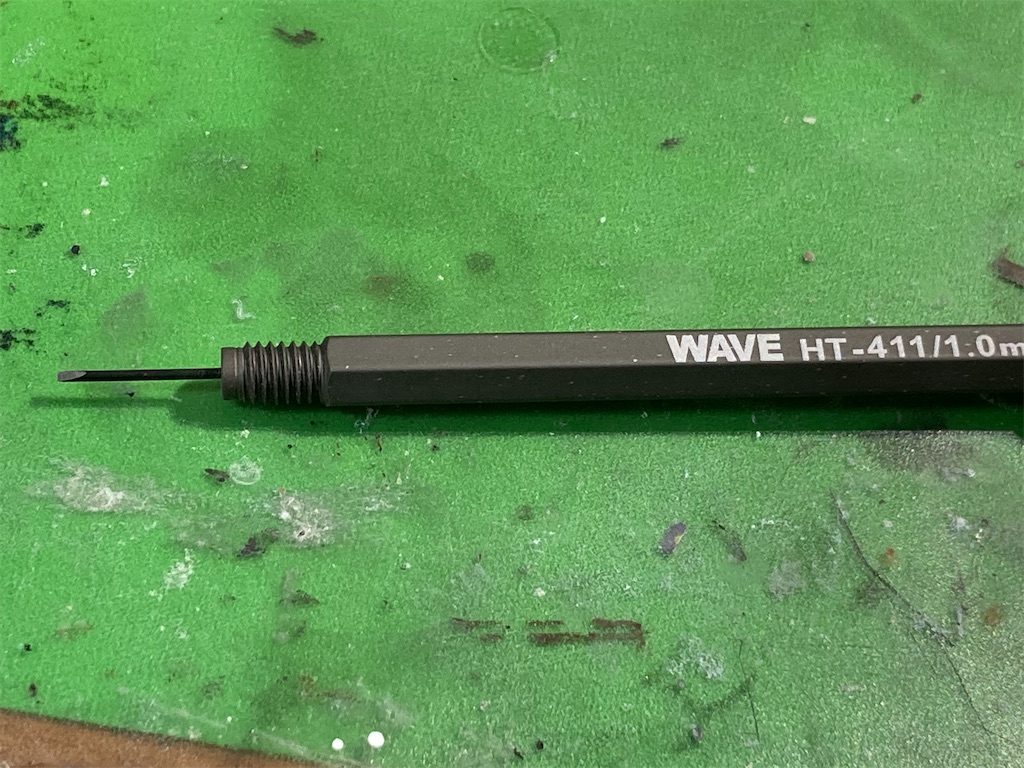 今回のVA-11 Hall-Aキットはデジタル造形ではなくアナログ造形でモールドがキッチリしてなく、途切れているところが多々あるっぽいのでこれを使い掘り繋ぎ直す。