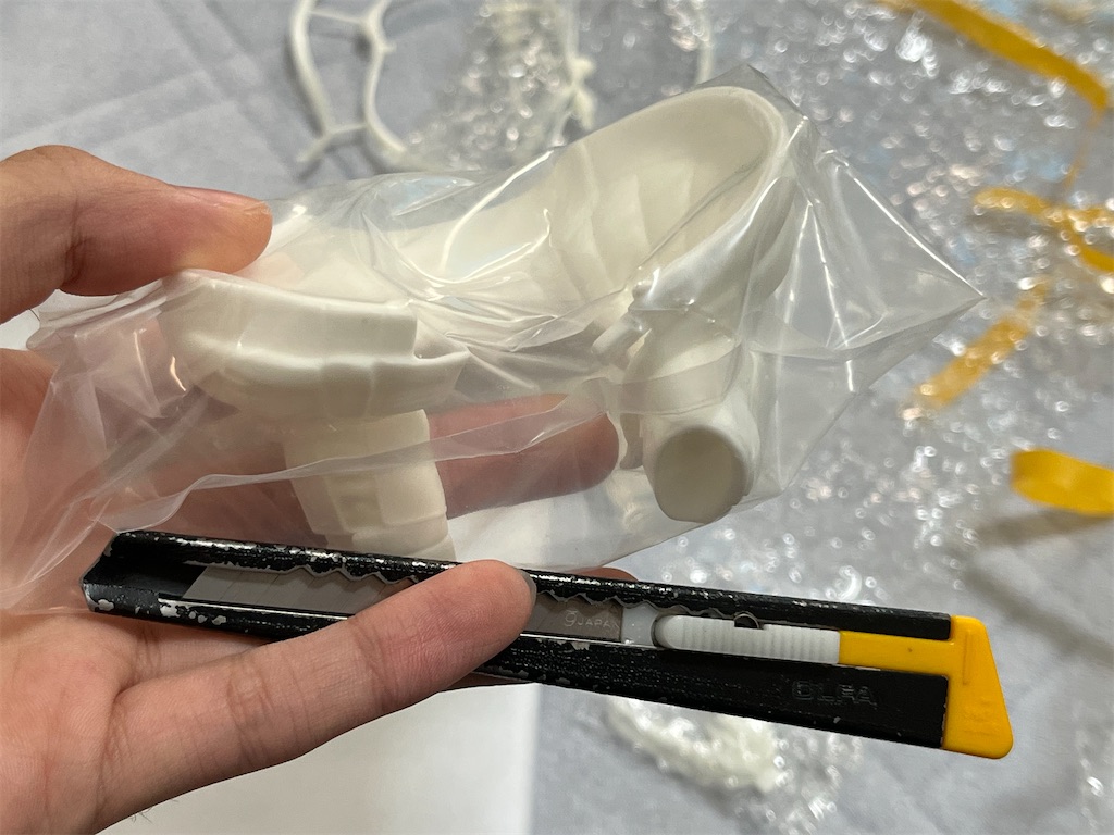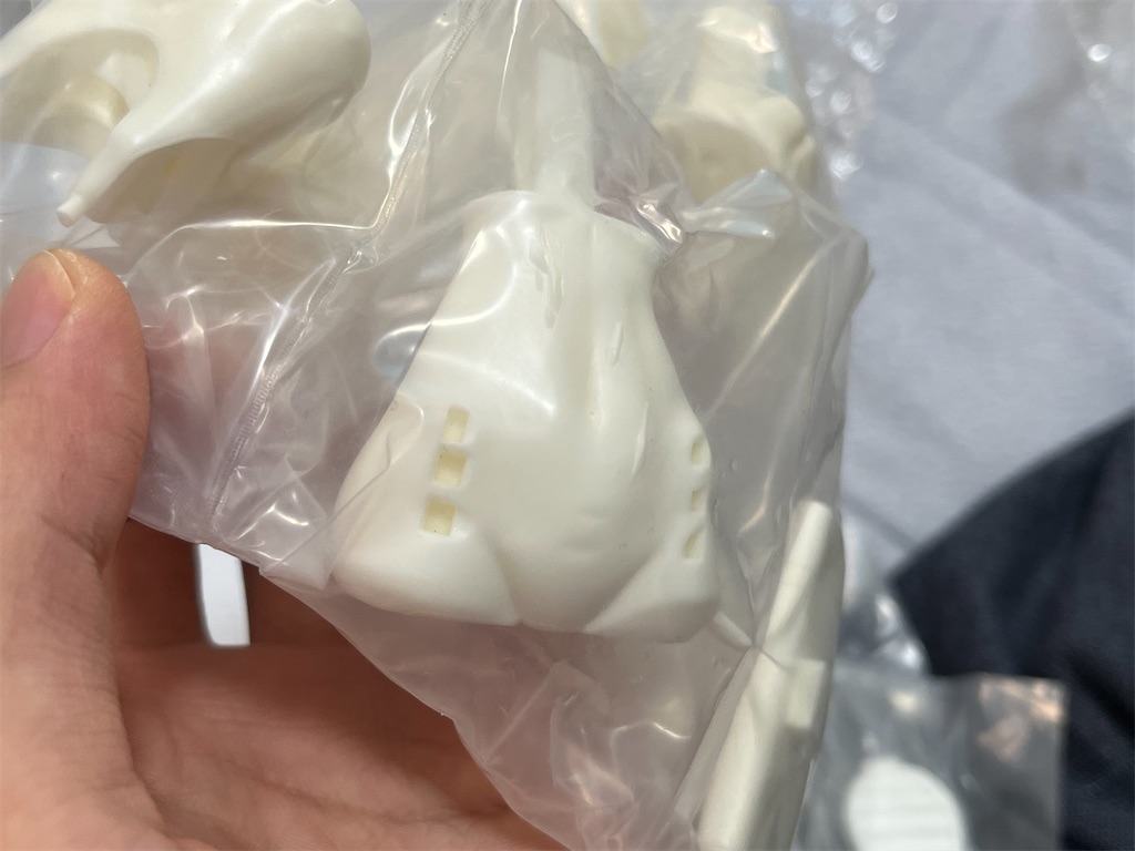 コロナで死にかけながら開封すると中国お馴染み?の引き裂き型複製(なのかな?)による片面パーティングライン最高!と画像の防護服のような複雑な形状の抜きの素晴らしさ、腹の素晴らしさに感動していた。