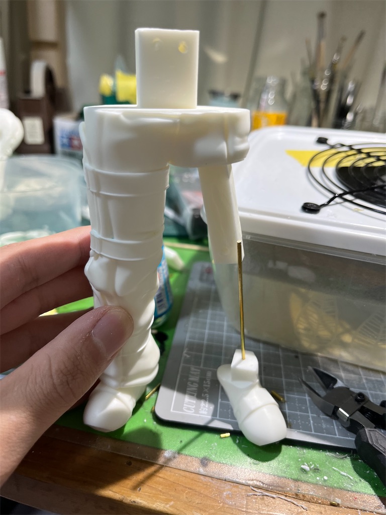 この足や胸部と言ったら縦に長いパーツのダボ穴がいつもの凹凸をハメるのではなく、空洞に棒を差し込むような形式になっていた。
