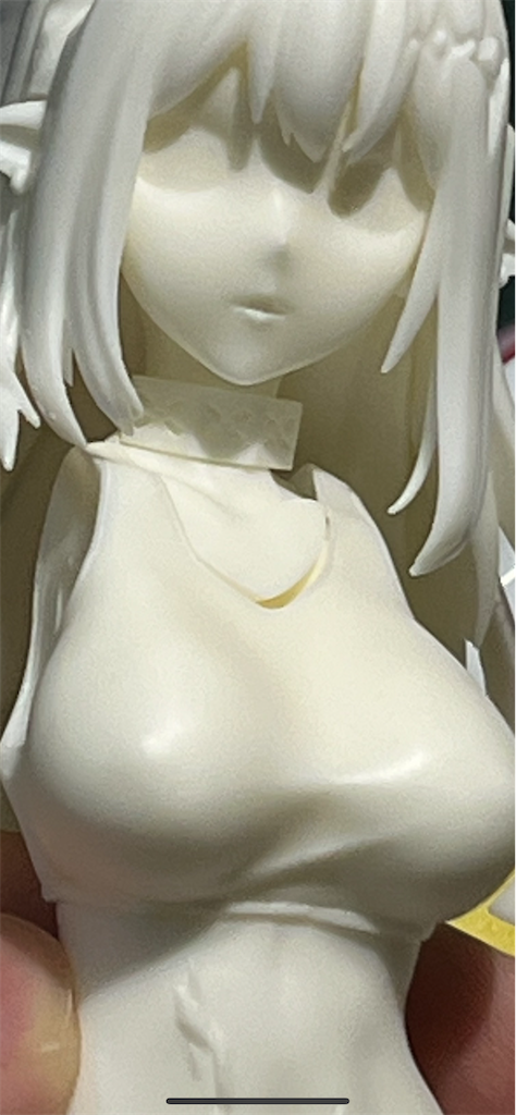 顔パーツはびっくりするくらい気泡が表面でてたり眠っていたりとパーツが荒れ放題なので足付け程度に磨いて塗料を厚吹きしてから磨いた。