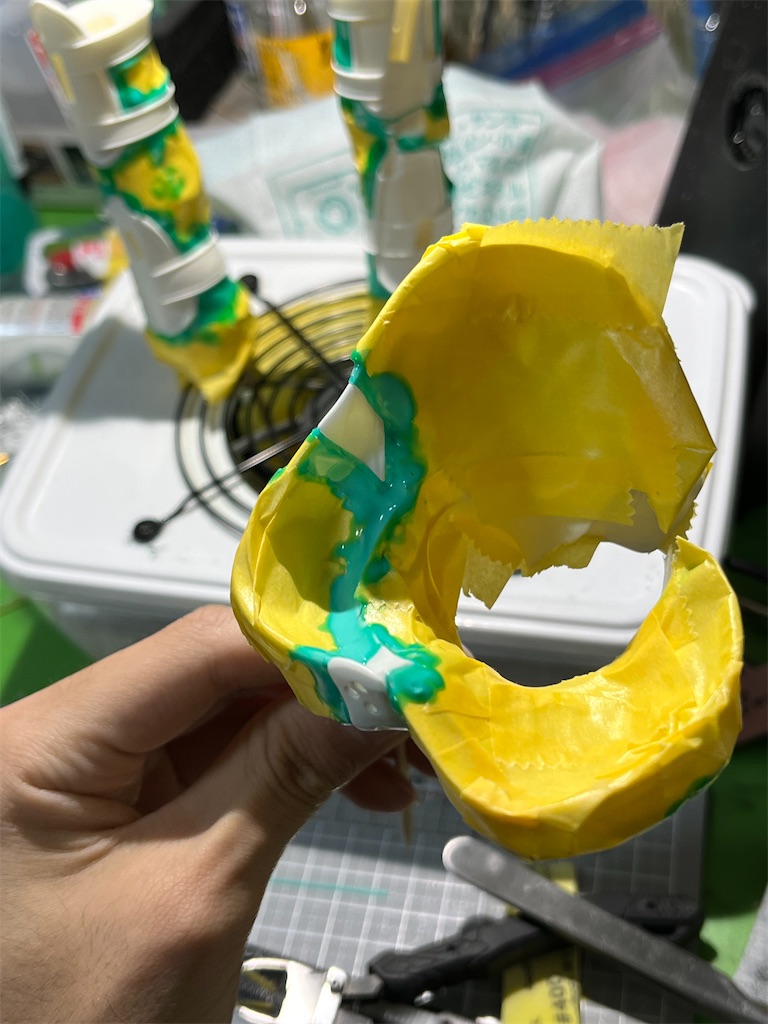 外骨格に関しては前回記事の通りロマン目的で真鍮パイプに置換したので若干マスキングしやすかった。