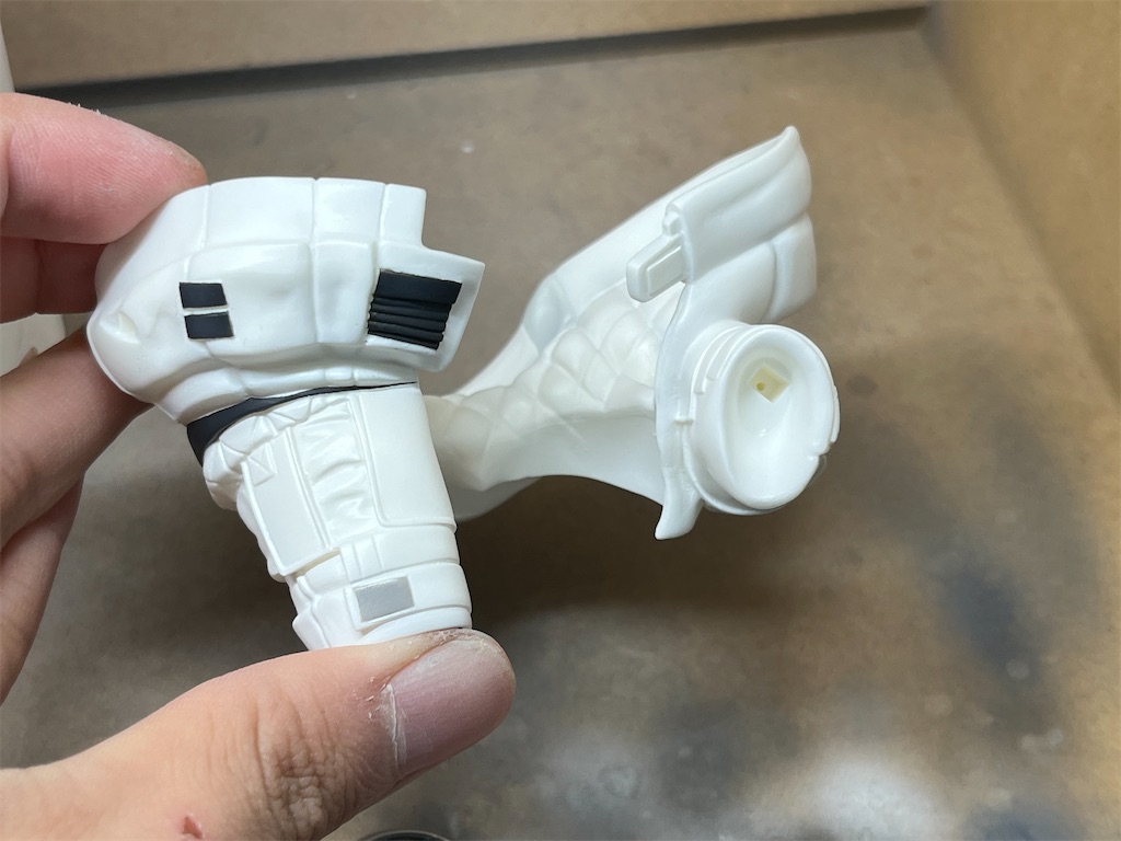 前回切り裂き型で楽と思いきや一風変わったダボとかで若干苦戦した表面処理が終わったので塗装のターン