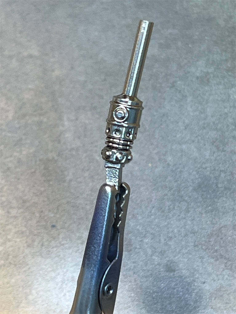 柄の部分はジャーマングレーで塗装後、完成見本がパール?メタリック?でハイライトを入れていたのが良いなと思ったのでパク...参考に塗装。