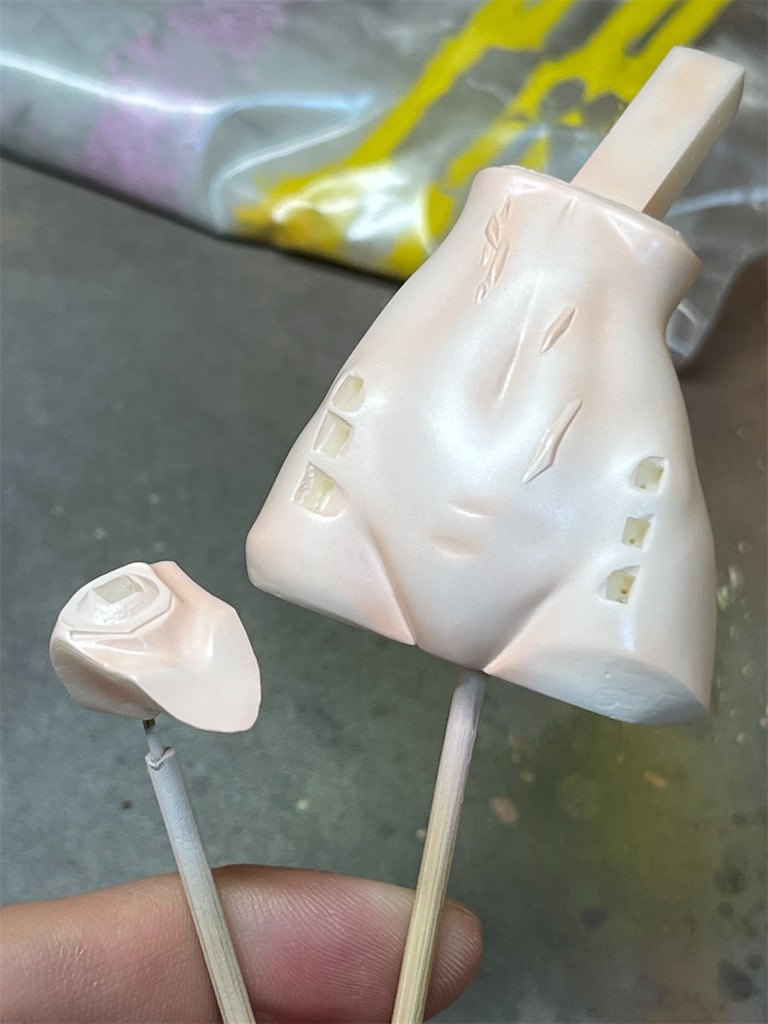 ps.髪の毛の写真撮り忘れたが音律スキンをイメージして、キャラクターホワイトをベースにCMY3色で暖色よりに濁らせたものを塗装。